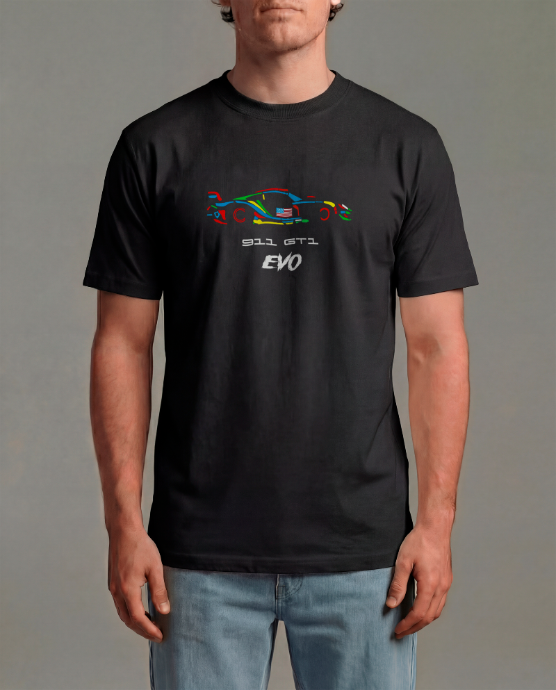 O 911 GT1 Evo é o ponto onde o espírito do 911 clássico encontra a selvageria das pistas de Le Mans. Com alma de protótipo e coração de Stuttgart, esse monstro dos anos 90 marcou a transição entre o GT e o futuro das corridas de resistência. A estampa celebra sua evolução com traços coloridos que representam velocidade, inovação e o eterno DNA Porsche.