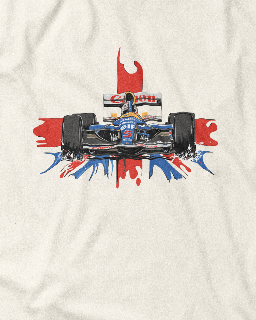 Essa estampa é um tributo inflamado ao icônico FW14B da Williams, guiado com coragem e fúria britânica por Nigel Mansell, o "Leão". Em 1992, com motor Renault, suspensão ativa e um talento colossal no cockpit, o carro esmagou rivais e eternizou-se como uma obra-prima da engenharia e da alma racing. Foi mais que um título mundial — foi a coroação de uma era. E agora, essa fera estampa o peito de quem carrega a velocidade no coração e o rugido na alma.