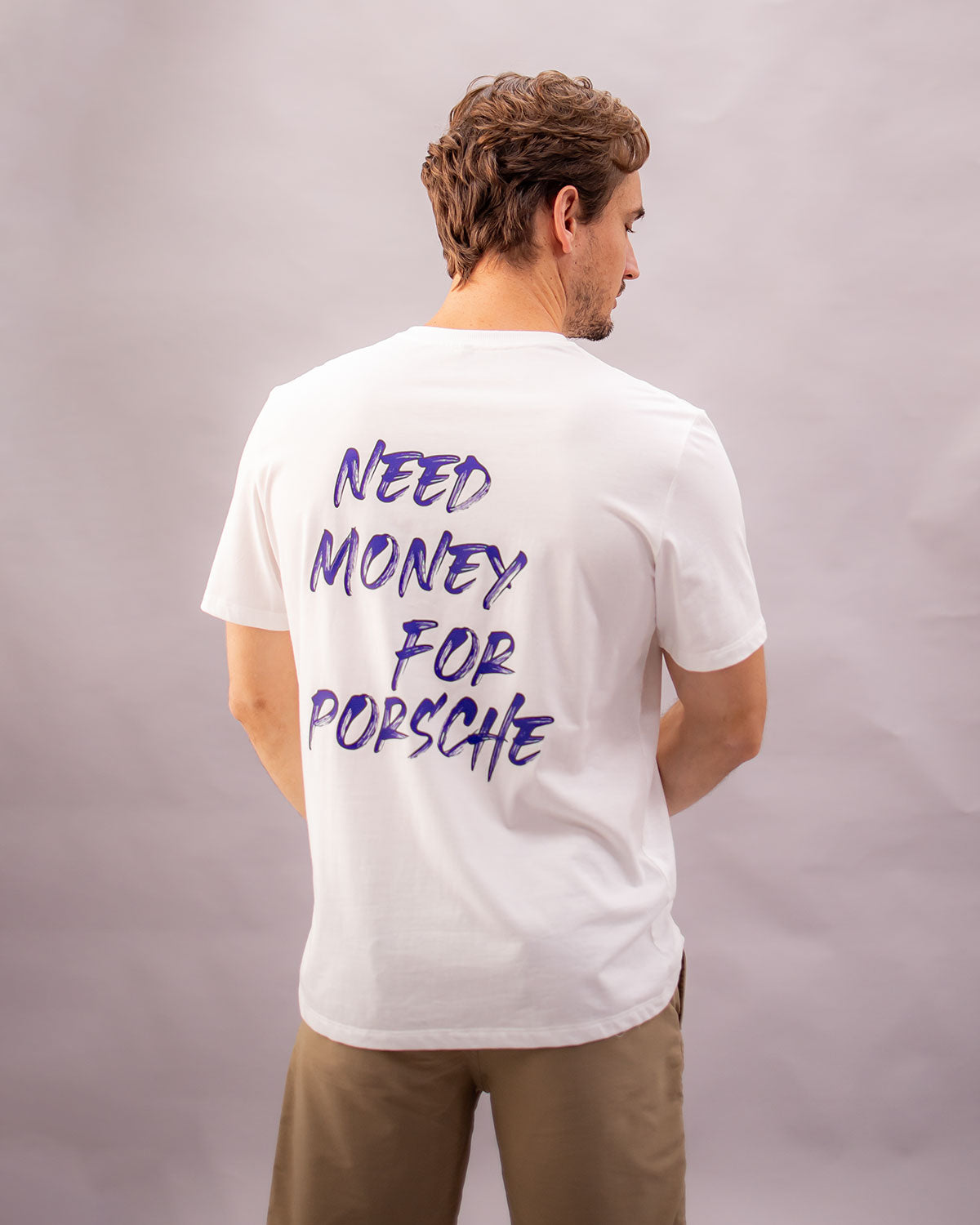 Prepare-se para uma explosão de estilo e humor com a nossa camiseta de malha 100% algodão premium. Cada detalhe foi cuidadosamente projetado para transmitir a sua paixão automotiva e aquele espírito descontraído que todos adoramos. Na estampa traseira, o slogan "Need Money For Porsche" brinca com o desejo universal de possuir um dos carros mais icônicos da história.