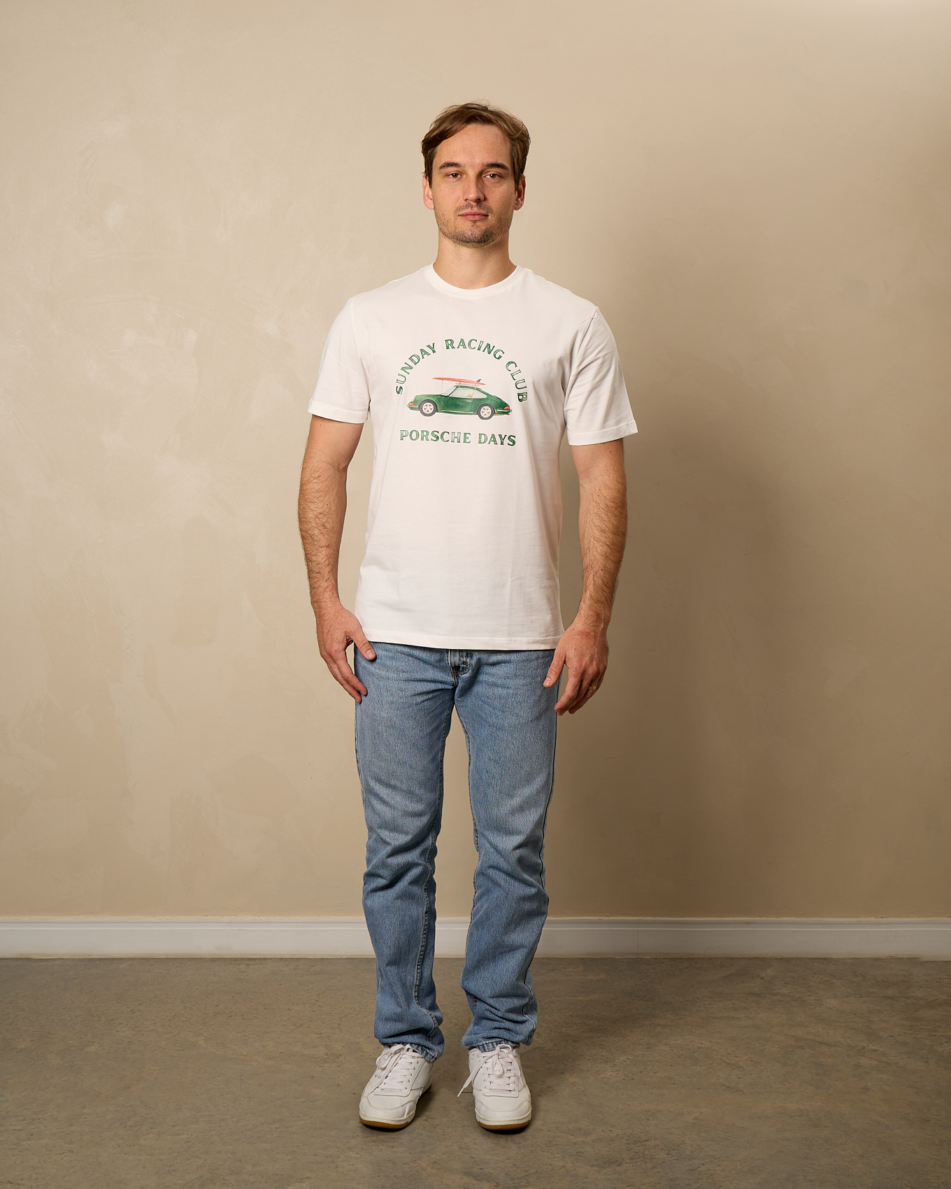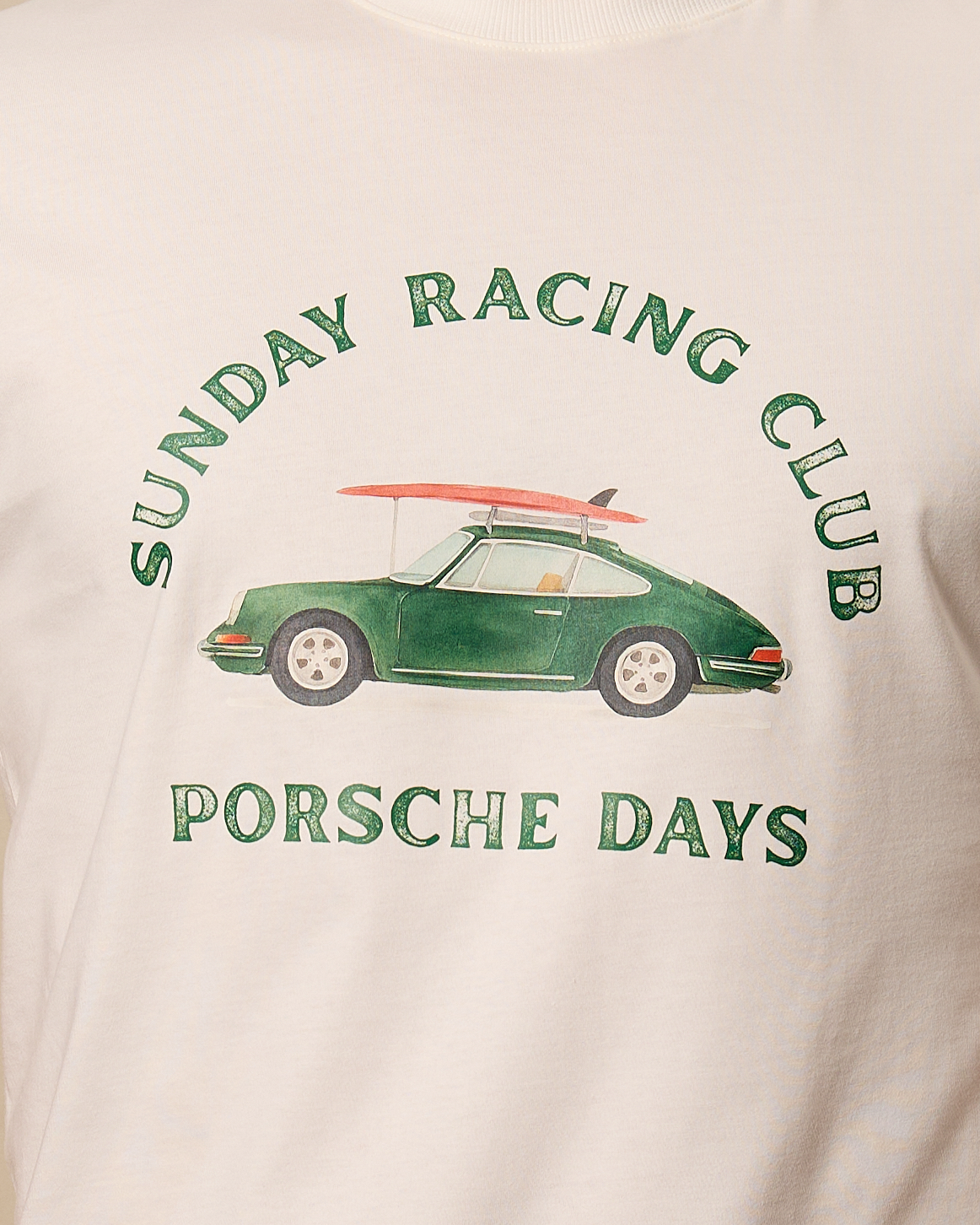 Reviva os domingos de corrida com nostalgia estampada no peito. Um clássico Porsche verde sob o sol evoca liberdade e velocidade com um toque retrô irresistível. Perfeito para quem ama acelerar nas memórias.