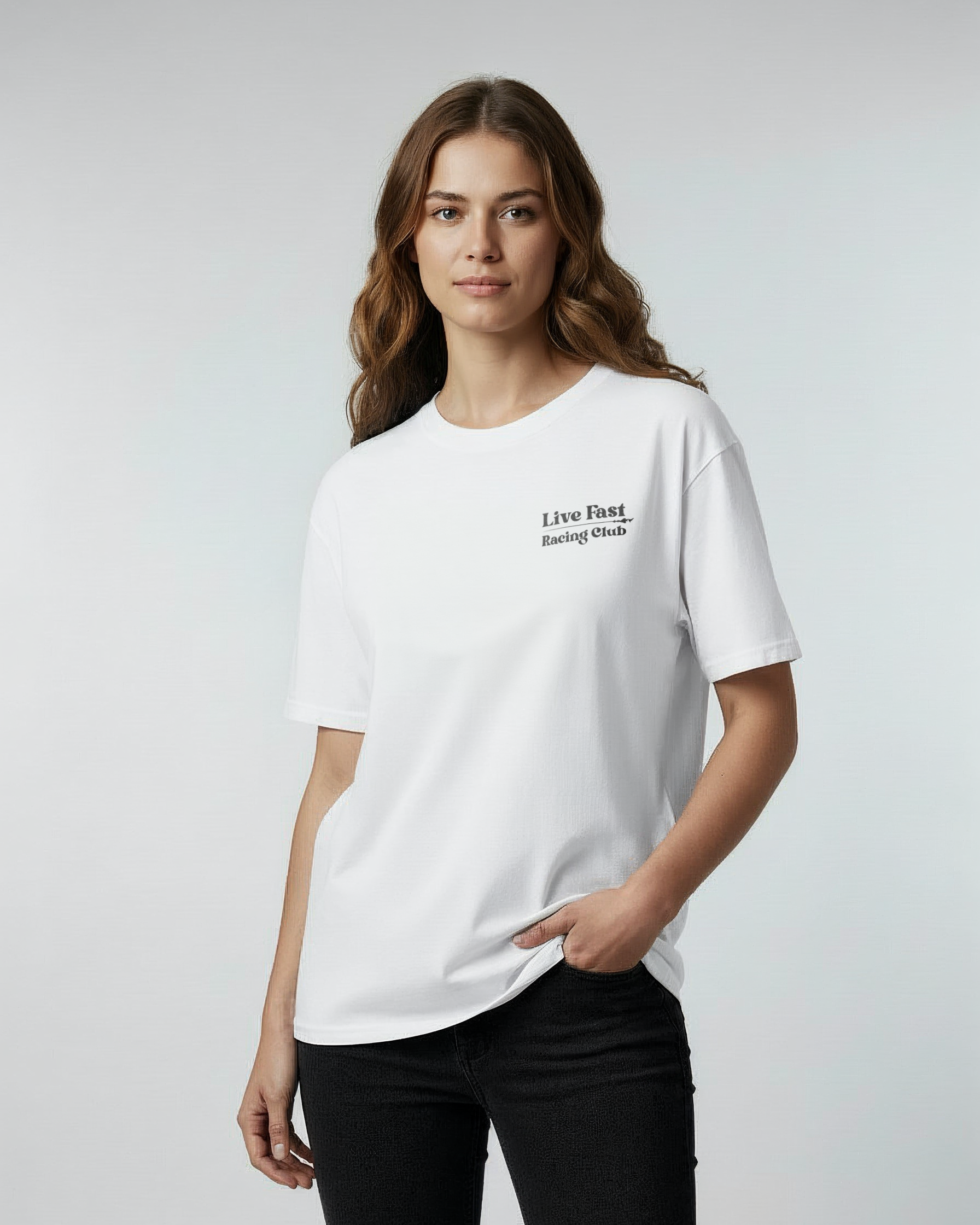 Com um toque rebelde e cheio de octanas, essa camiseta é uma homenagem à alma selvagem das garotas que aceleram corações e motores. A frase "Pretty Girls Love Fast Cars" crava na estampa o espírito dos paddocks, onde o charme encontra a velocidade. Na frente, discreta mas potente, a insígnia “Live Fast Racing Club” evoca uma irmandade que vive sem freio, onde estilo e paixão pelo automobilismo dividem a mesma pista. Uma peça pra quem vive rápido, ama forte e nunca freia no meio da curva.